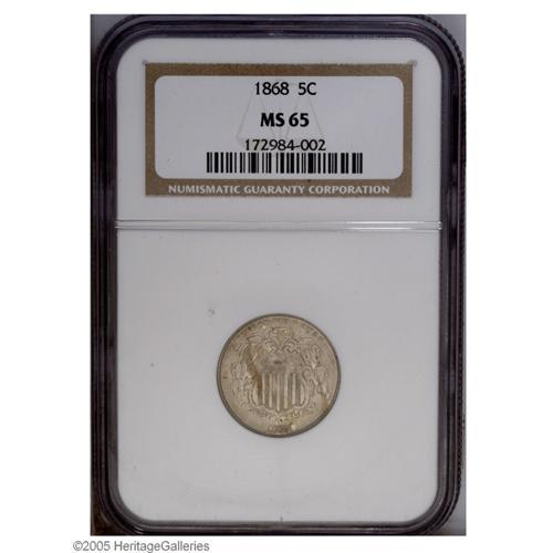 1868 5C MS65 NGC. The obverse is boldly struck with a 1868[5C] MS65 NGC.