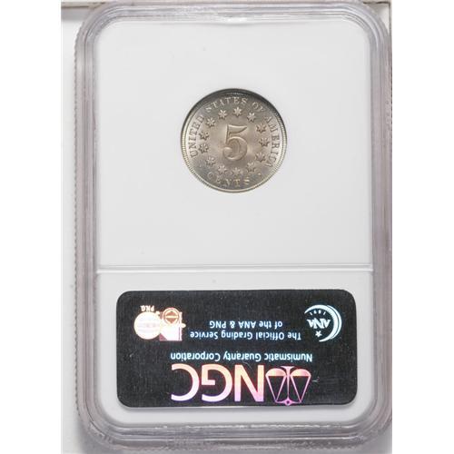 <B>1868 5C MS66 NGC.</B></I> The outer ring of olive-accented blue envelops a rose-orange center on each side. Solidly struck overall with pretty luster. Census: 29 in 66, 2 finer (10/06).<BR><BR><b>Shipping:</b> Coin/Currency (<a target="_blank" href="http://www.heritageauctions.com/common/shipping.php">view shipping information</a>)