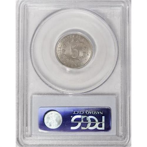 <B>1868 5C MS66 PCGS.</B></I> This is an exceptionally well struck Premium Gem, with just a touch of weakness on a couple of the reverse stars. The lower right edge of the C in CENT in missing (as struck). Expertly preserved and free of any distractions. Population: 25 in 66, 0 finer (11/07).<BR><I>From The Madison Collection.</B></I><BR><BR><B>Coin Engraver:</B> James B. Longacre<BR><BR><b>Shipping:</b> Coins & Currency (<a target="_blank" href="http://www.heritageauctions.com/common/shipping.php">view shipping information</a>)