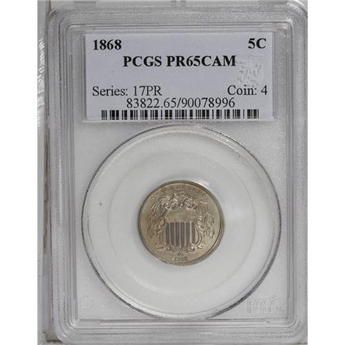 1868 5C PR65 Cameo PCGS. The date is nicely repunched.