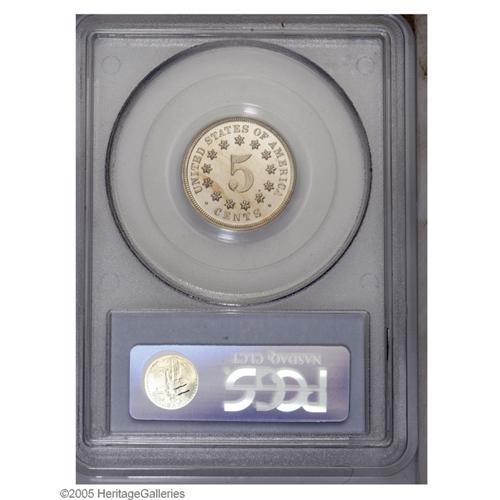 <B>1868<5C> PR66 Cameo PCGS.</B></I> The date is lightly repunched, most noticeably within the loops of the second 8. A well struck near-Gem that has light hazy patina and modest cameo contrast. The surfaces are carefully preserved. Population: 10 in PR66 Cameo, 1 in PR66 Deep Cameo, none finer (9/05).