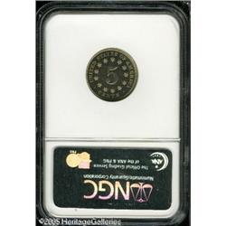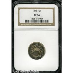<B>1868 5C PR66 NGC.</B></I> The date is noticeably repunched. A lightly toned and needle-sharp Gem that is essentially pristine overall. Lot:5844