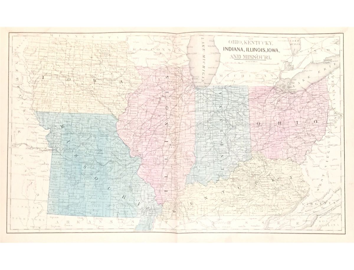 1868 Copperplate Map from Mitchell's Modern Atlas of Indiana, Illinois, Iowa, Ohio, Kentucky and Missouri (Michigan and Wisconsin are on the backside)