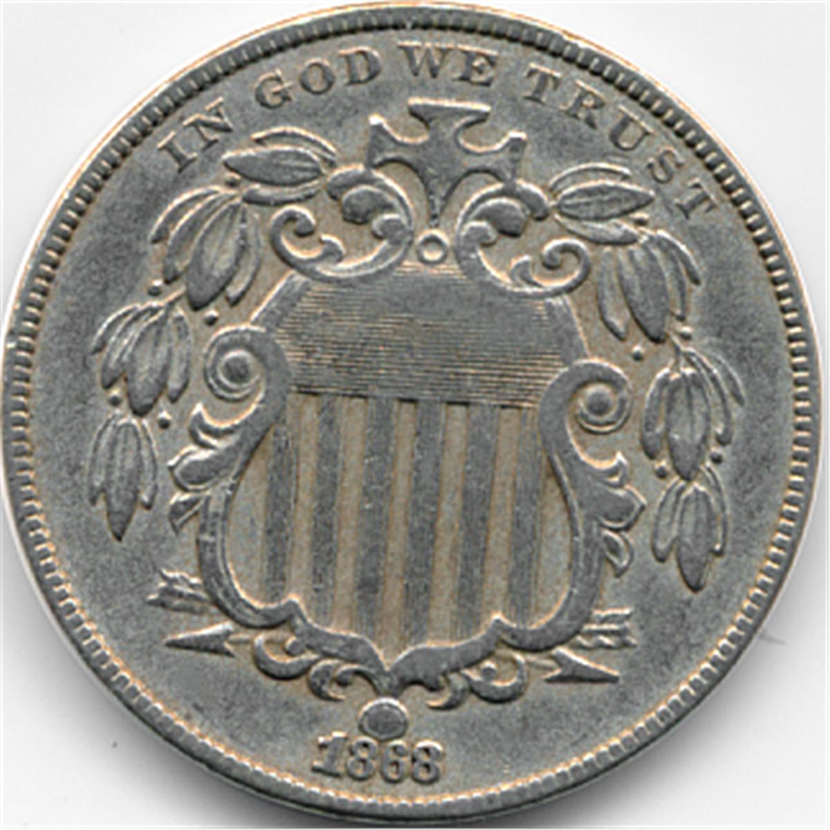 1868 DOUBLE DIE OBV SHIELD NICKEL-AU