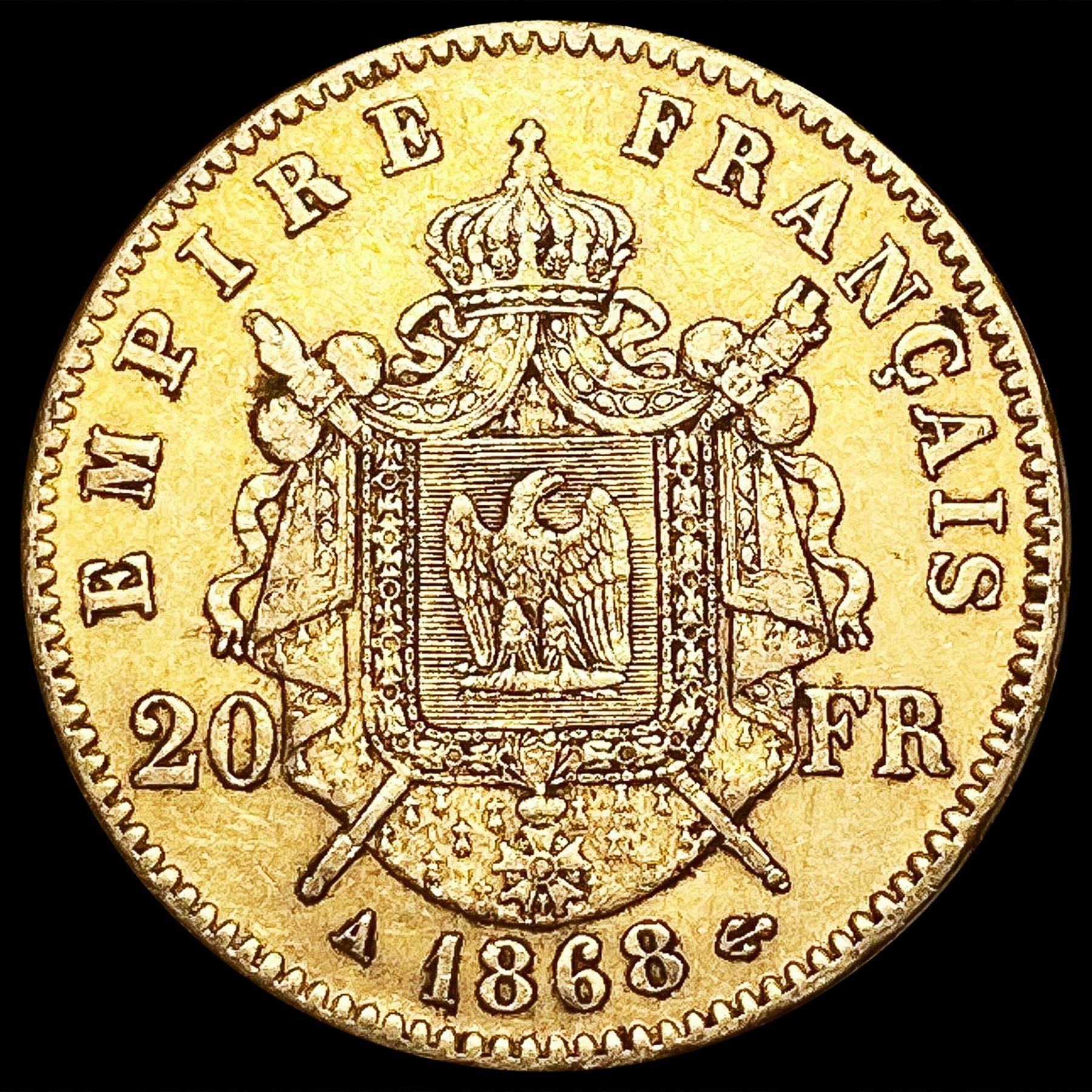 1868 France .1867oz Gold 20 Francs CLOSELY UNCIRCU