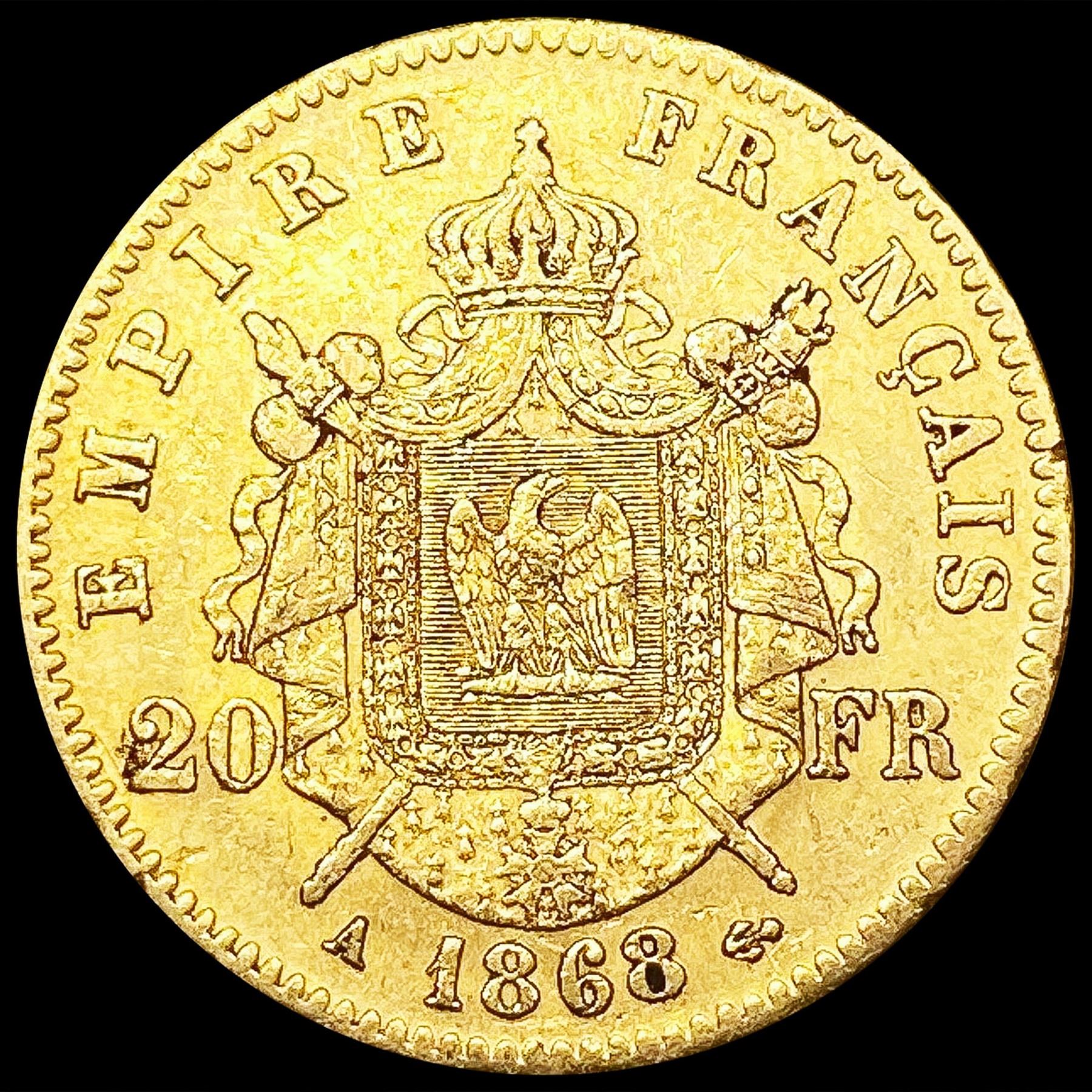 1868 France .1867oz Gold 20 Francs CLOSELY UNCIRCU