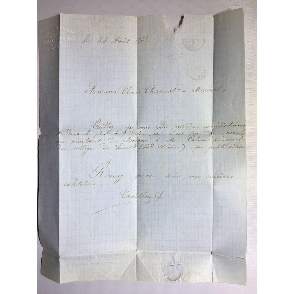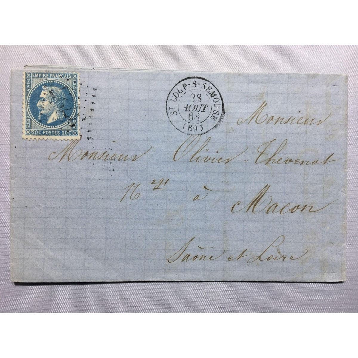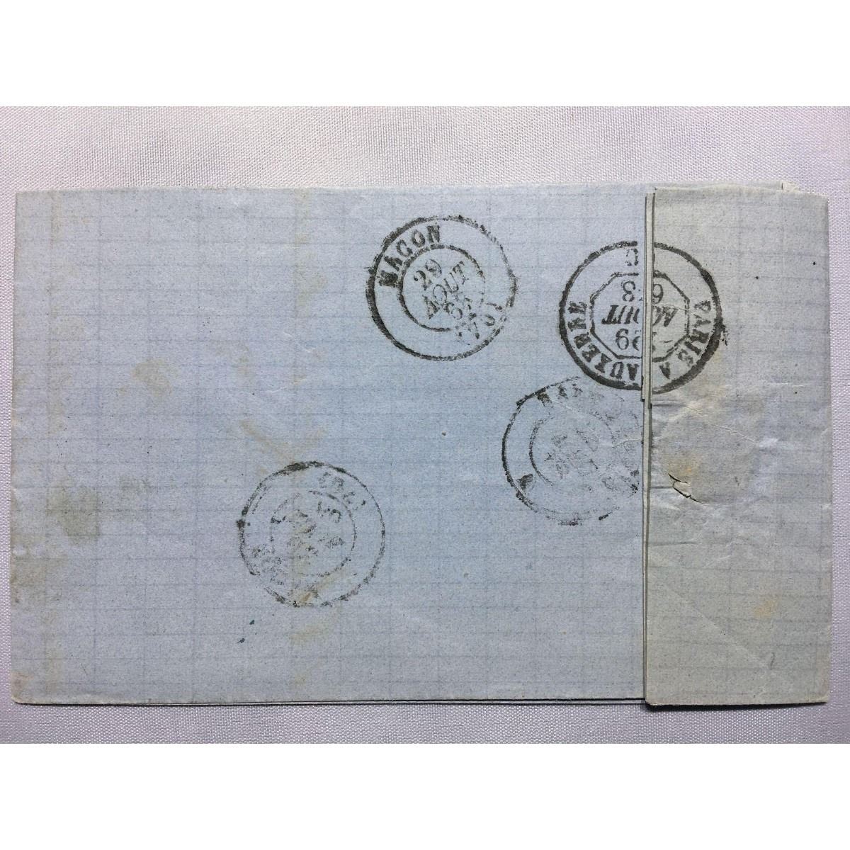 1868 Paris stamped original iron gall handwritten letter and envelope now in a protective sleeve with a 20 C Empire Franc Postes stamp.Â