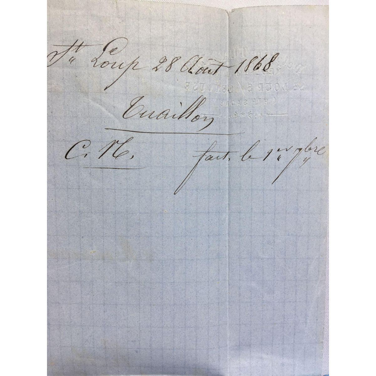 1868 Paris stamped original iron gall handwritten letter and envelope now in a protective sleeve with a 20 C Empire Franc Postes stamp.Â