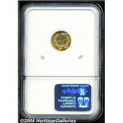<B>1868<G$1> MS63 NGC.</B></I> A sharply struck and semi-prooflike Gold Dollar with bright yellow-gold color. Well preserved aside from a few faint marks on the lower right obverse field. Although the mintage of 10,500 pieces is not particularly low for the denomination, Mint State survivors are nonetheless very scarce. Population: 15 in 63, 11 finer (6/04). <BR><BR><B>Important notice:</B> Heritage usually auctions material at the rate of 200-250 lots per hour. On some occasions eBay Live bid software or the Internet may not be able to keep up with the pace of the auction. We recommend placing a realistic absentee bid now as insurance to avoid disappointment. Occasionally the auctioneer may eliminate or reject an eBay Live bid, and the auctioneer may also reopen a lot after the close of the eBay live bidding (usually because we missed an audience bid), and may reject your bid even if it shows you as the winning bidder. By bidding via eBay Live, you agree that Heritage may award the lot to another bidder at its sole discretion under the circumstances described above or any other reasonable circumstances. Since eBay bids are not shown to us until we open the lot on the floor, we treat those bids just like floor bids. In most cases the floor responds before the eBay bid is presented to us, due to Internet lag time, so for consistency we have made it a policy that floor bids are always considered first over tie eBay live bids. Also please note that all Heritage lots purchased through eBay Live carry a 20% Buyer's Premium. Please make sure you read the Terms and Conditions before you bid. </span></font></tr></table></td></tr></table>