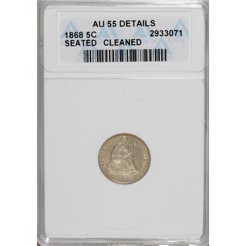 <B>1868 H10C --Cleaned--ANACS. AU55 Details.</B></I> NGC Census: (0/112). PCGS Population (2/47). Mintage: 88,600. Numismedia Wsl. Price for NGC/PCGS coin in AU55: $315. (#4392)<BR><BR><b>Shipping:</b> Coins & Currency (<a target="_blank" href="http://www.heritageauctions.com/common/shipping.php">view shipping information</a>)