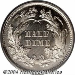 <table><tr><td><table><tr><td>1868 H10C Half Dime, Judd-638, Pollock-710, Low R.6, PR66 PCGS. Struck in nickel alloy with a plain edge from regular issue Seated half dime dies. Brilliant aside from occasional faint tan color and a few minute charcoal toning flecks on the obverse. Like one of the other examples of Judd-638 in the present sale, this piece is struck from perfect dies without clashmarks. Not fully struck, but essentially free from contact. <BR><BR><B>Important notice:</B> Heritage usually auctions material at the rate of 200-250 lots per hour. On some occasions eBay Live bid software or the Internet may not be able to keep up with the pace of the auction. We recommend placing a realistic absentee bid now as insurance to avoid disappointment. Occasionally the auctioneer may eliminate or reject an eBay Live bid, and the auctioneer may also reopen a lot after the close of the eBay live bidding (usually because we missed an audience bid), and may reject your bid even if it shows you as the winning bidder. By bidding via eBay Live, you agree that Heritage may award the lot to another bidder at its sole discretion under the circumstances described above or any other reasonable circumstances. Since eBay bids are not shown to us until we open the lot on the floor, we treat those bids just like floor bids. In most cases the floor responds before the eBay bid is presented to us, due to Internet lag time, so for consistency we have made it a policy that floor bids are always considered first over tie eBay live bids. Also please note that all Heritage lots purchased through eBay Live carry a 20% Buyer's Premium. Please make sure you read the Terms and Conditions before you bid. <BR><BR><B>IMPORTANT ANNOUNCEMENT ABOUT RESERVES:</B> Heritage now divulges all reserves on its web site 7 days before every auction. If you want to know whether the reserve on this lot has been met, and if not, what the reserve amount is, please visit this lot page on the HeritageCoin.com web site, or email: bid@HeritageGalleries.com </span></font></td></tr></table></td></tr></table>