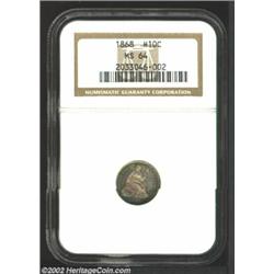1868 H10C MS64 NGC. This originally toned, predominantly dove-gray example is a survivor from an ori