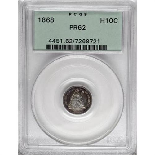 <B>1868 H10C PR62 PCGS.</B></I> PCGS Population (24/126). NGC Census: (7/117). Mintage: 600. Numismedia Wsl. Price for NGC/PCGS coin in PR62: $410. (#4451)<BR><BR><B>Coin Engraver:</B> Christian Gobrecht<BR><BR><b>Shipping:</b> Coins & Currency (<a target="_blank" href="http://www.heritageauctions.com/common/shipping.php">view shipping information</a>)