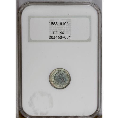 <B>1868<H10C> PR64 NGC.</B></I> This razor-sharp specimen is delightfully patinated in navy-blue, gold, and rose tones. Encapsulated in a prior generation holder. Just 600 pieces were struck.
