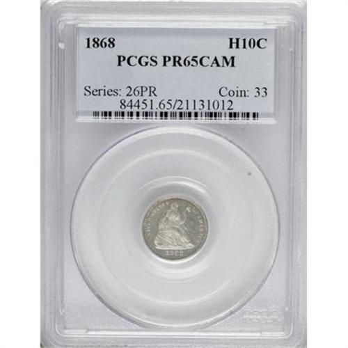 <B>1868 H10C PR65 Cameo PCGS.</B></I> A flashy Gem whose deep reflectivity is undimmed by light haze. Boldly struck with pleasing contrast. Population: 4 in 65 Cameo, 3 finer (6/07). <BR><BR><b>Shipping:</b> Coins & Currency (<a target="_blank" href="http://www.heritageauctions.com/common/shipping.php">view shipping information</a>)