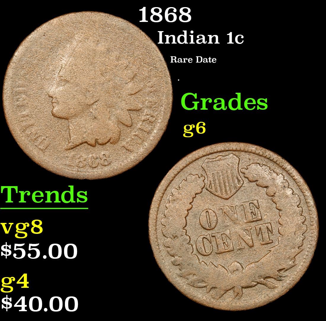 1868 Rare Date . Indian Cent 1c Grades g+.