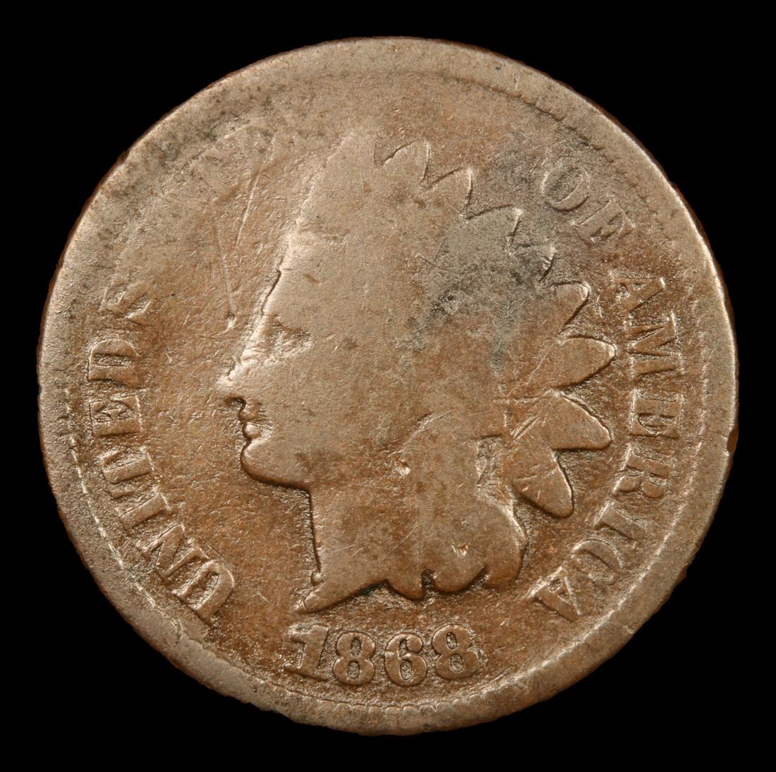 1868 Rare Date . Indian Cent 1c Grades g+.