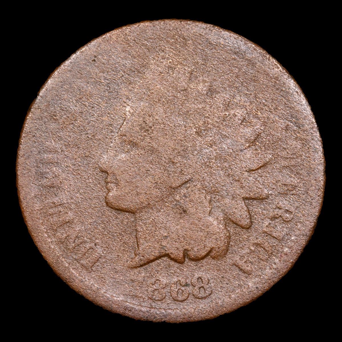 1868 Rare Date . Indian Cent 1c Grades g+.