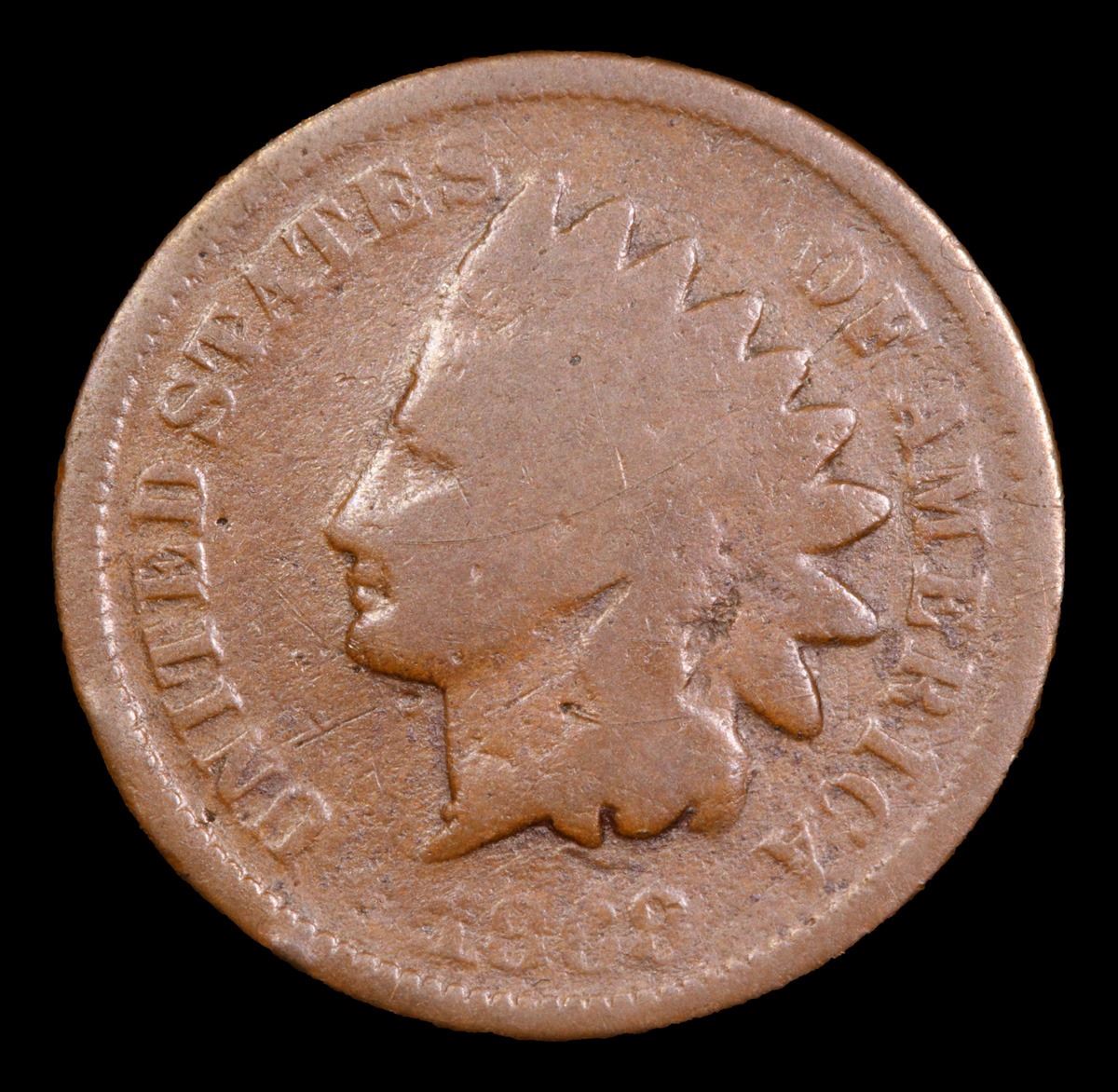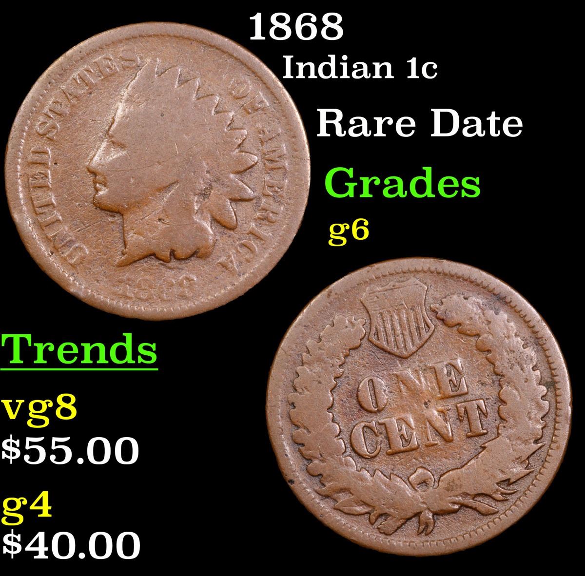 1868 Rare Date . Indian Cent 1c Grades g+.