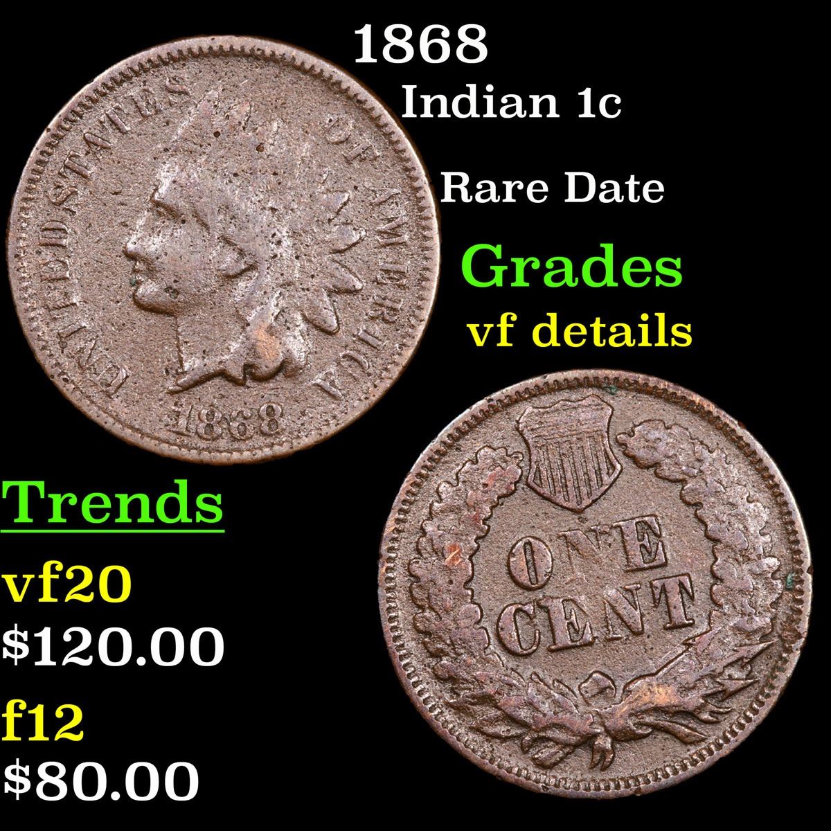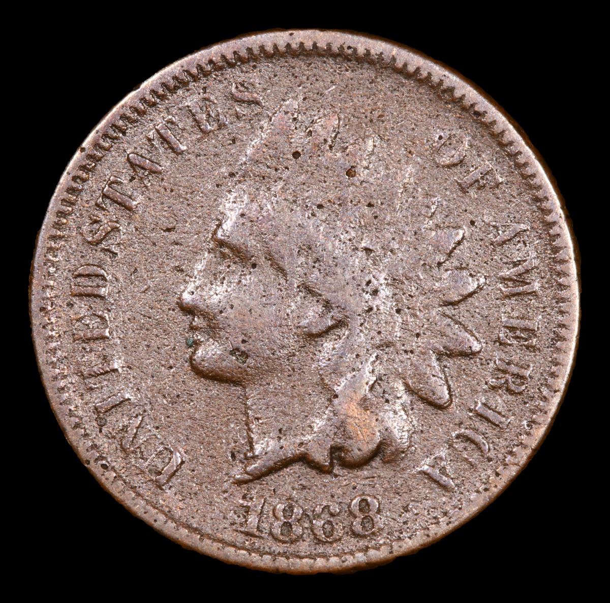 1868 Rare Date . Indian Cent 1c Grades vf details.