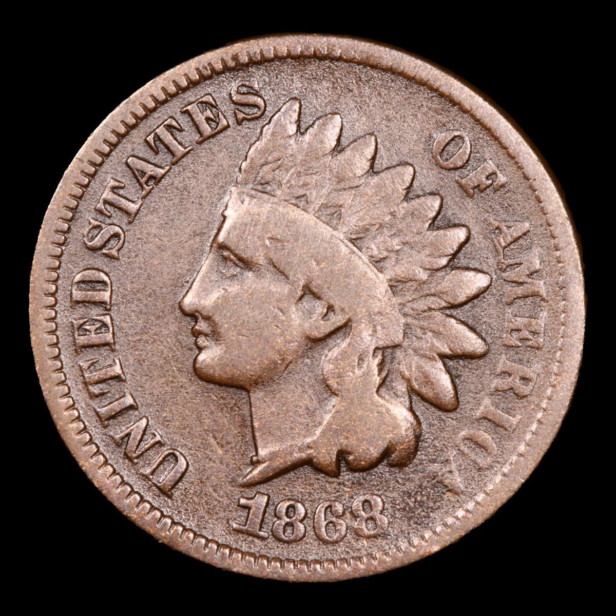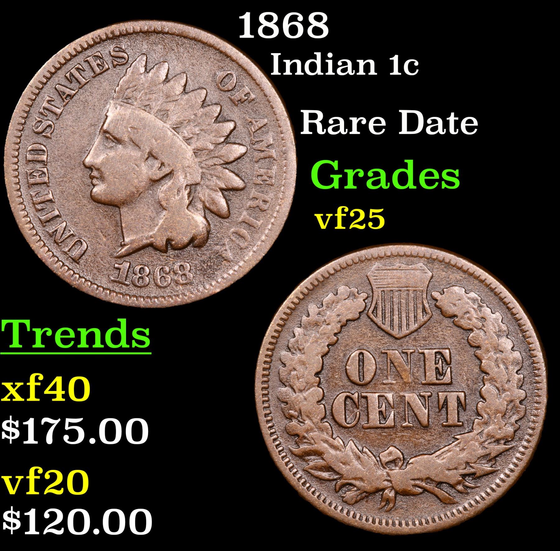 1868 Rare Date . Indian Cent 1c Grades vf+.