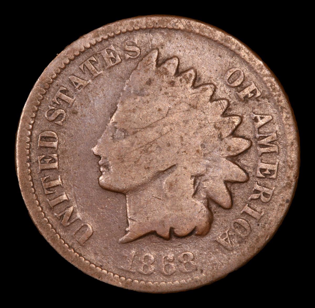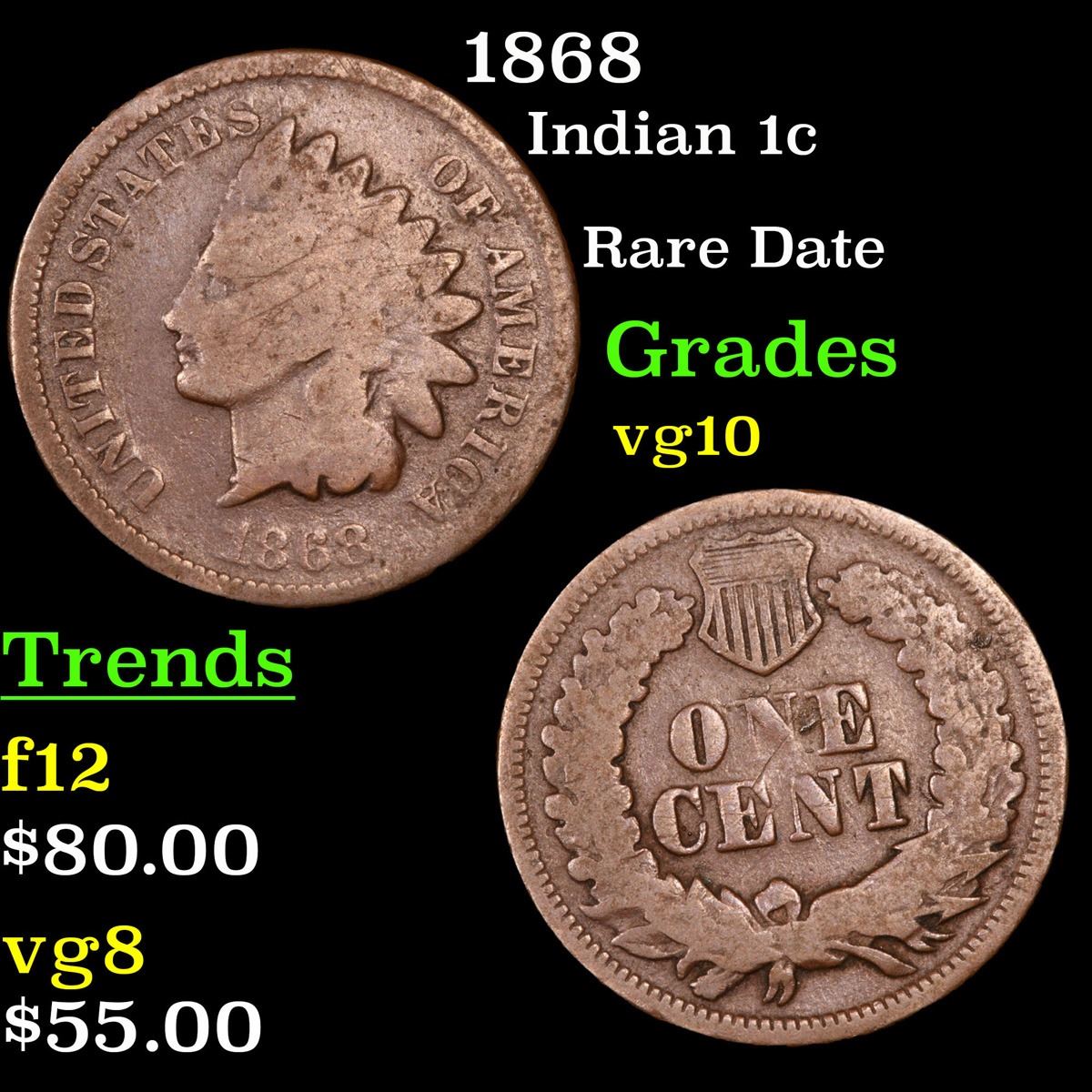 1868 Rare Date . Indian Cent 1c Grades vg+.