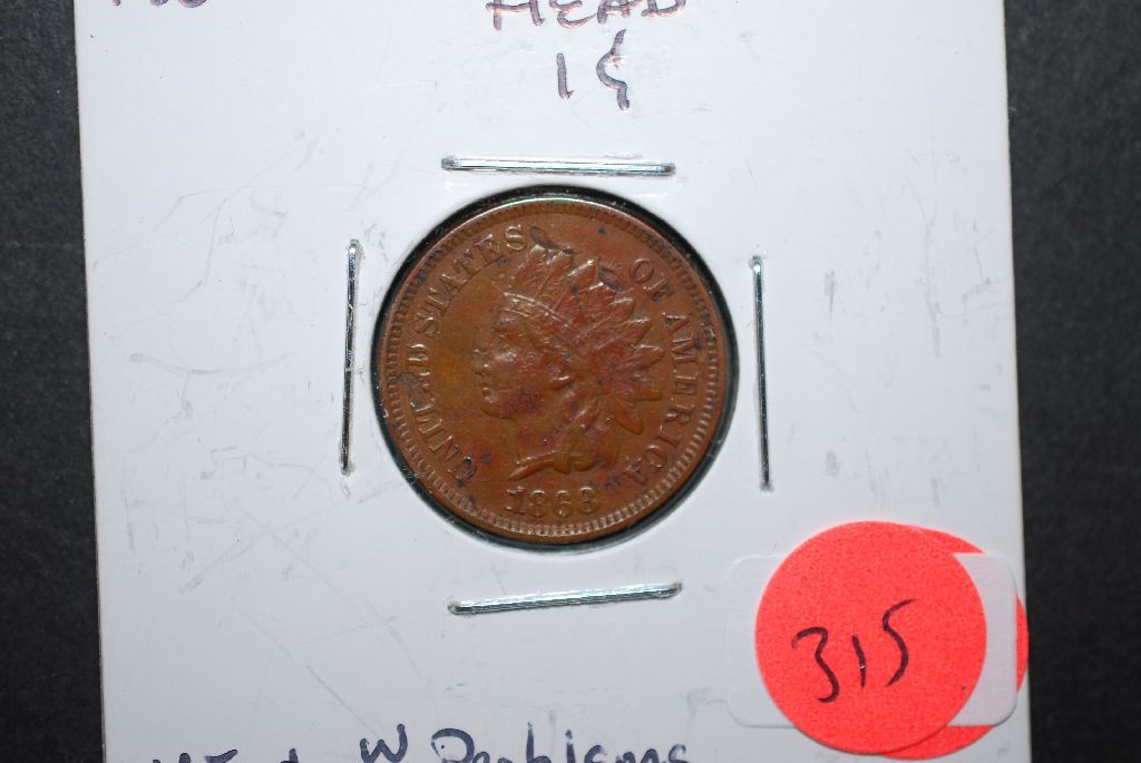 1868 Indian Head One Cent; VF+ With Problems; EST. $125-170