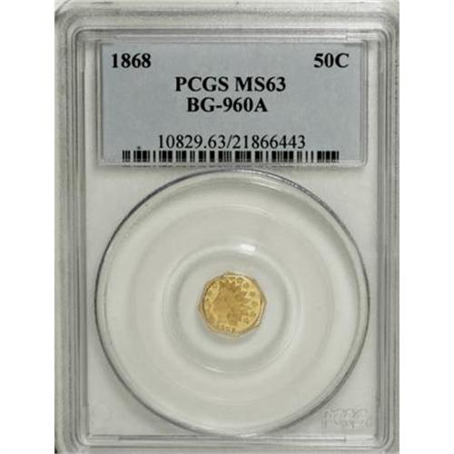1868 Octagonal Indian 50C, BG-960A, MS63 PCGS.