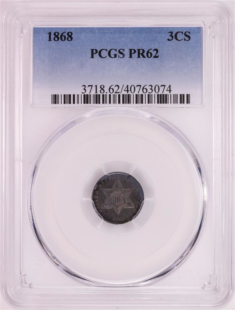 One 1868 Proof Three Cent Silver Coin PCGS PR62. PCGS Graded.