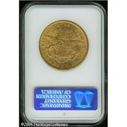 <B>1868-S $20 AU55 NGC.</B></I> This coin has the usual numerous small abrasions that are typically seen on this issue, but here they are mostly concentrated on the obverse. Much of the original luster remains and both sides show a rich reddish-golden color that is most appealing. A scarce date at most grade levels, which becomes quite challenging at AU, and is downright rare in Mint State. Lot:9041