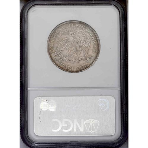 <B>1868-S<50C> XF45 NGC.</B></I> Autumn-brown toning approaches the rims, while the centers offer ivory-gray color. A few light handling marks on the obverse field and the eagle, but the overall appearance is impressive for the grade and issue. A plentiful production, nonetheless underappreciated in better circulated grades. Census: 5 in 45, 27 finer (12/05).