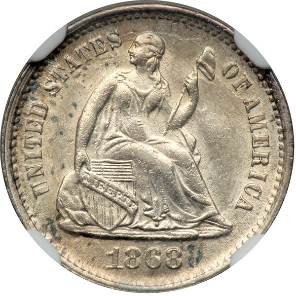 1868-S. NGC graded AU-58 PQ. Mostly white and frosty. A Premium Quality coin for the grade.