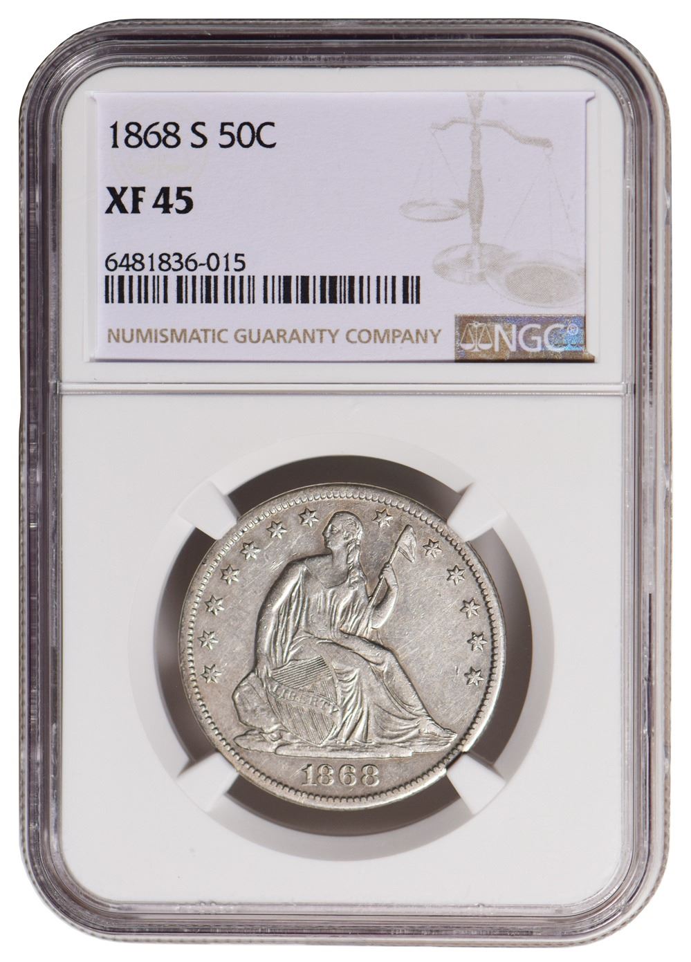 One 1868-S Seated Liberty Half Dollar NGC XF45.