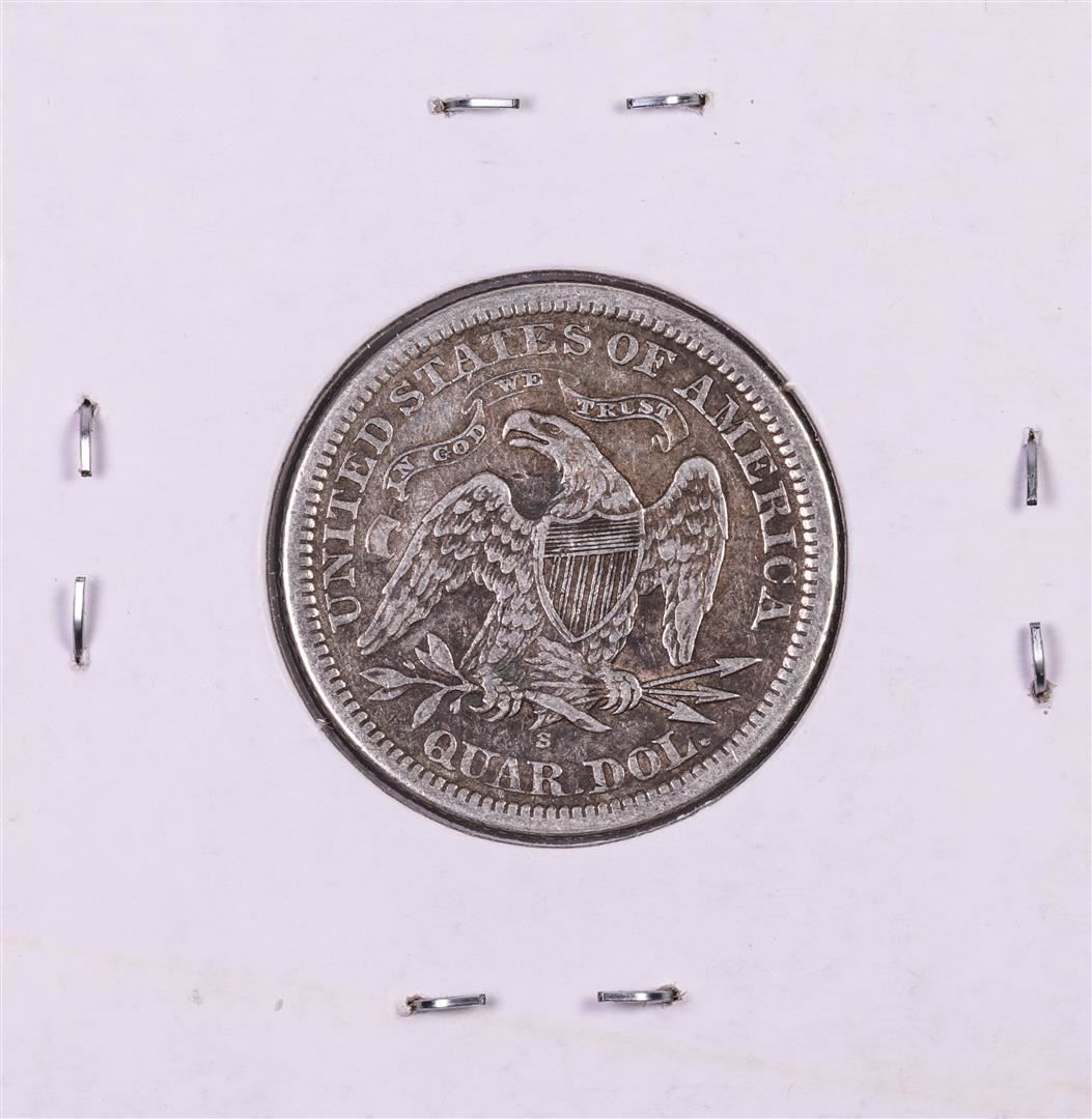 One 1868-S Seated Liberty Quarter Coin.