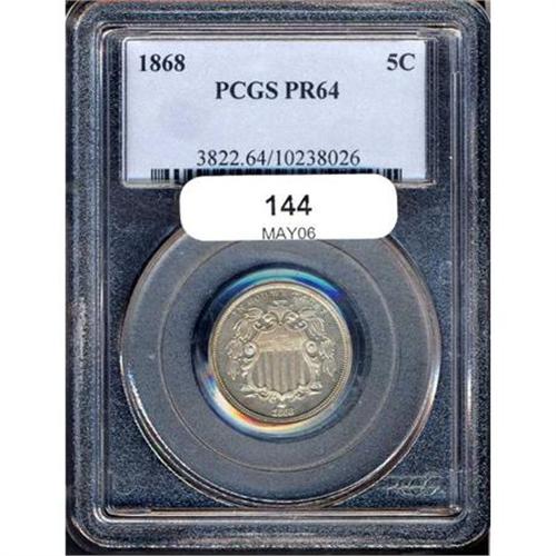 <b>1868 Shield Nickel. PCGS graded Proof 64.</b> A choice gleaming smooth Proof; one of only 600 Proofs minted this year <b>(PCGS # 3822)</b> <i>