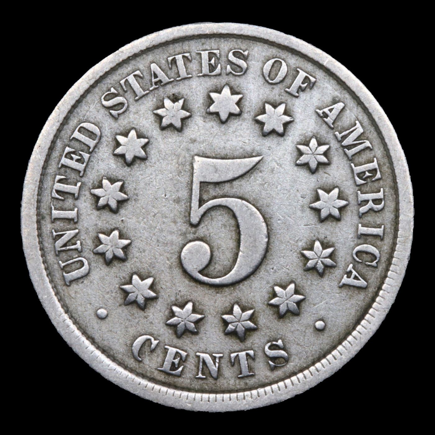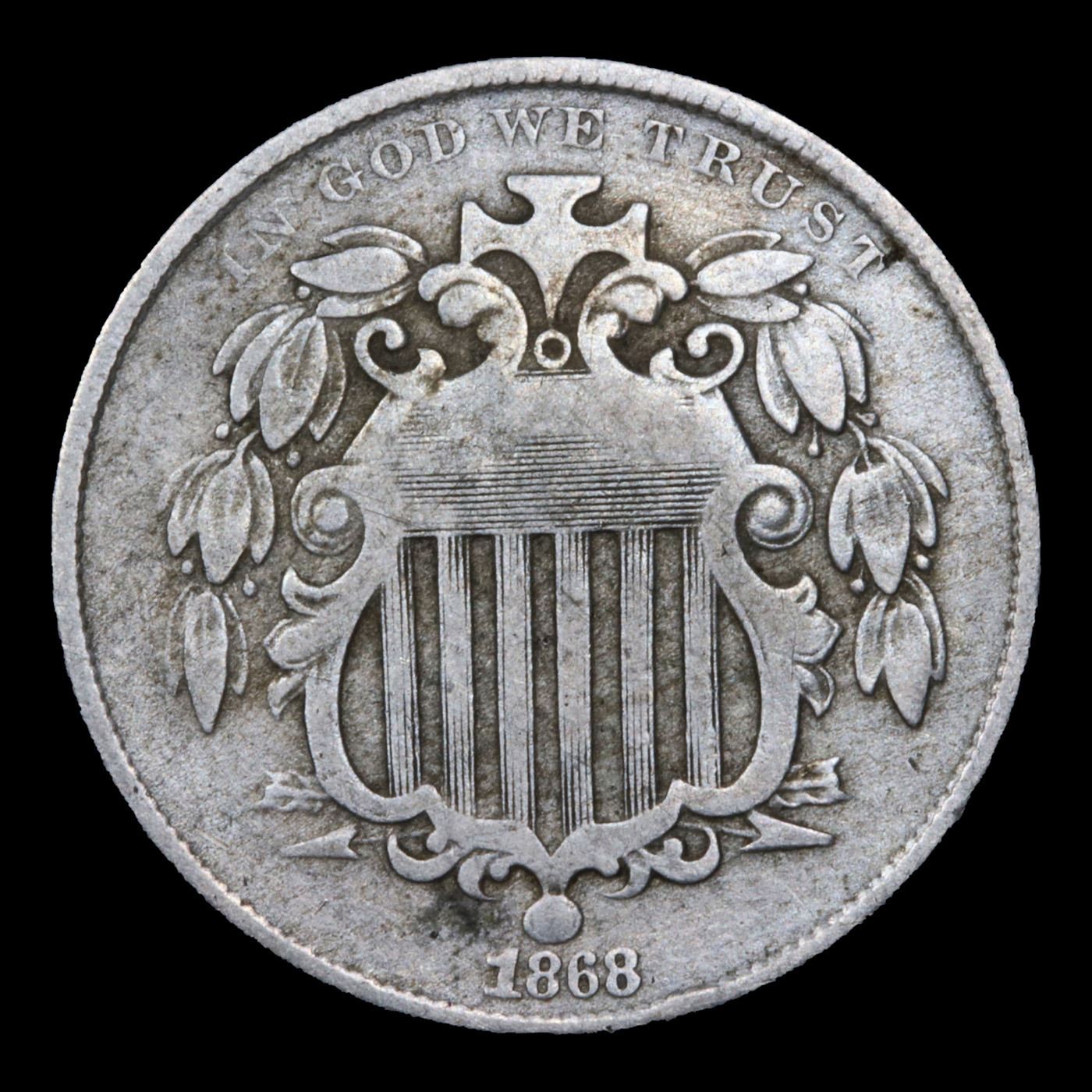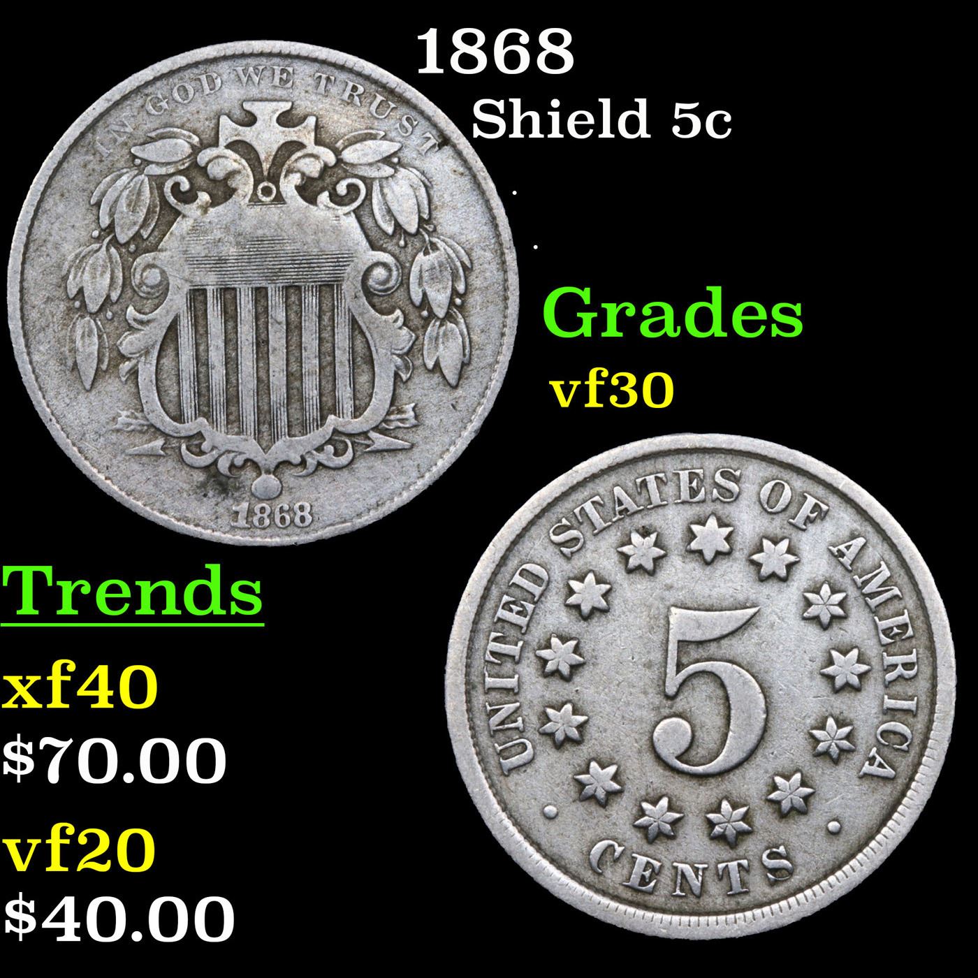 1868 Shield Nickel 5c Grades vf++.