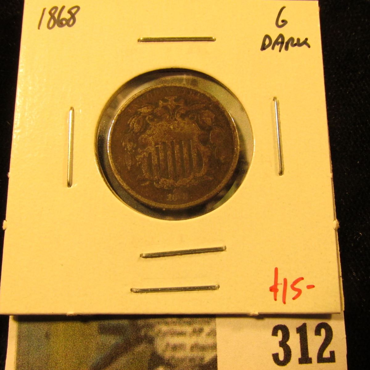 1868 Shield Nickel, G dark, value $15