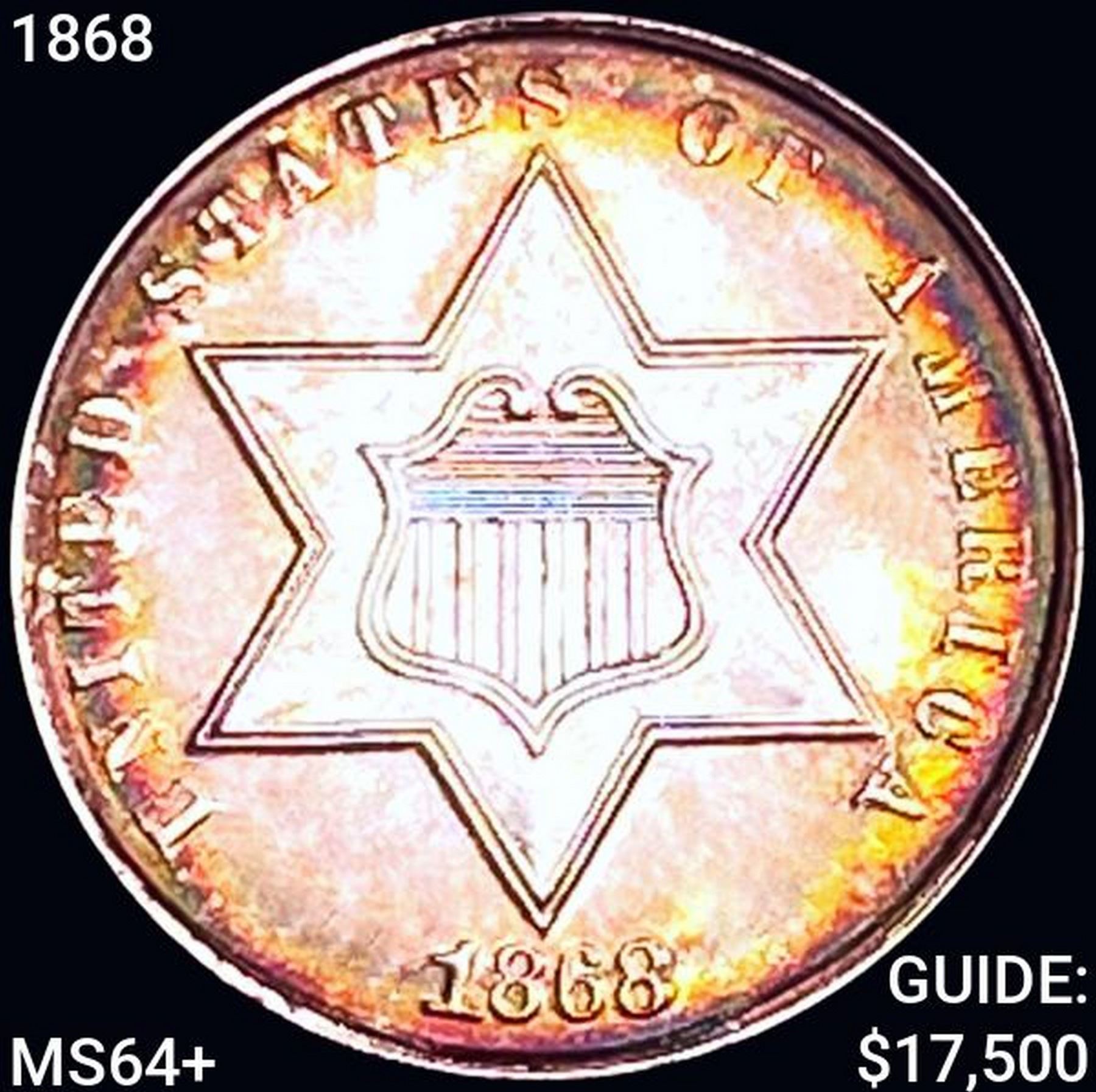 1868 Silver Three Cent CHOICE BU+