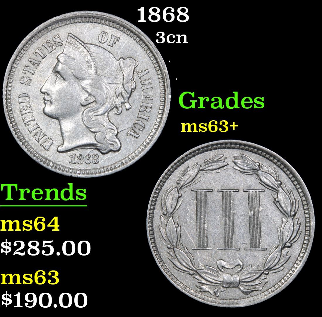 1868 . . Three Cent Copper Nickel 3cn Grades Select+ Unc.