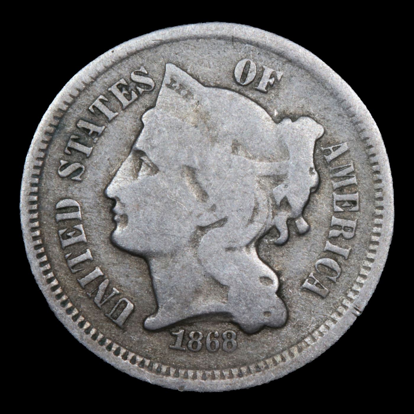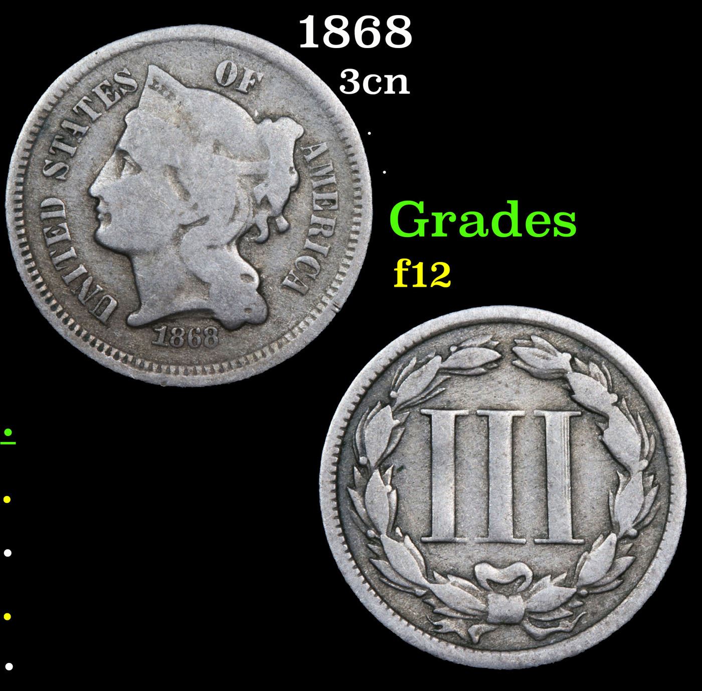 1868 Three Cent Copper Nickel 3cn Grades f, fine.