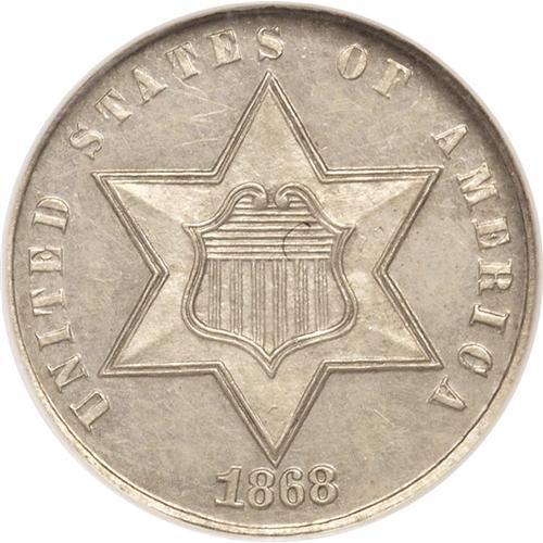 <B>1868 Twelve-Piece Proof Set NGC.</B></I> A remarkable 1868 proof set that includes two patterns, as issued. With the inclusion of the three cent nickel and five cent patterns this set has the appearance of an original proof set. Many proof sets were issued in this year with these two patterns plus the cent pattern, Judd-608 (not included here). Included are:<BR><BR><B>1868 Cent PR64 Red NGC.</B></I> Bright and flashy with complete mint red color. The reverse is rotated 180 degrees, as seen on many (most?) proof 1868 cents.<BR><BR><B>1868 Two Cent Piece PR65 Red and Brown NGC.</B></I> Deeply reflective and mostly cherry-red with a slight bit of browning around the margins.<BR><BR><B>1868 Three Cent Silver PR61 NGC.</B></I> Hairlined, but not obviously so, with muted gray-golden toning over each side.<BR><BR><B>1868 Three Cent Nickel PR64 Cameo NGC.</B></I> A brilliant coin with pronounced contrast between the fields and devices. A bit of darker patina is seen over the highpoint of Liberty's cheek.<BR><BR><B>1868 Three Cent Nickel, Judd-618, Pollock-687, R.4. PR63 NGC.</B></I> Similar to the regular issue, but from an entirely different die. The Roman numerals on the reverse are smooth and without ribs. Struck in nickel with a plain edge. Light, even gray-lilac patina is seen over each side. A long planchet lamination that resembles a die crack is located on the lower right portion of the reverse.<BR><BR><B>1868 Nickel PR64 NGC.</B></I> Mostly brilliant with deeply reflective, glittering mirrors in the fields. Light roller marks are seen over the 5 in the center of the reverse.<BR><BR><B>1868 Five Cent, Judd-633, Pollock-704, R.5. PR65 NGC.</B></I> Struck on a regular five cent-sized planchet. The obverse is a larger variant of the three cent nickel design, while the reverse has a large V in the center surrounded by a laurel wreath and a small Maltese cross at the top. IN GOD WE TRUST is on a ribbon around the cross. Struck in nickel with a plain ed
