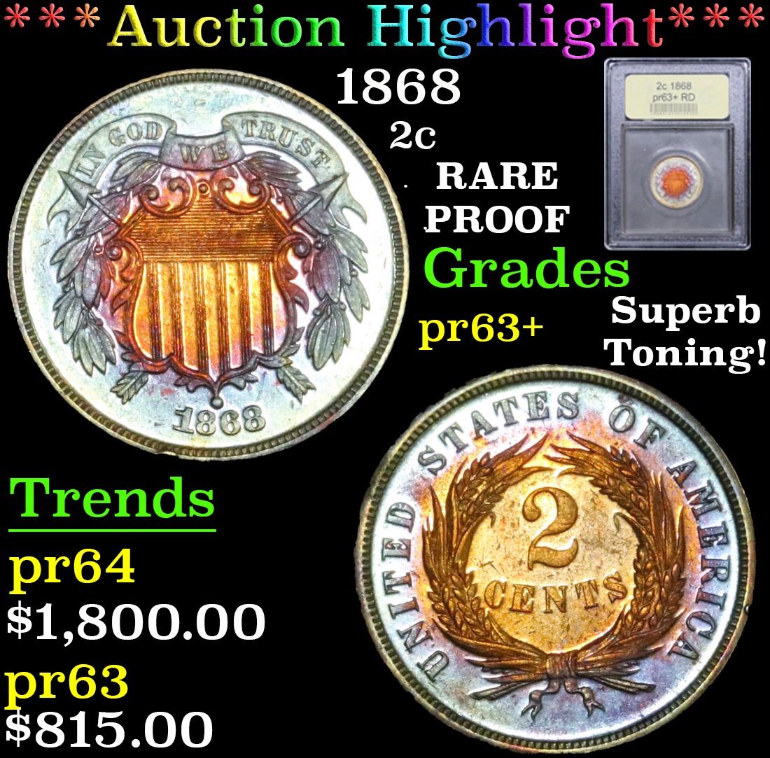 1868 . . Two Cent Piece 2c Graded Select+ Proof by USCG.