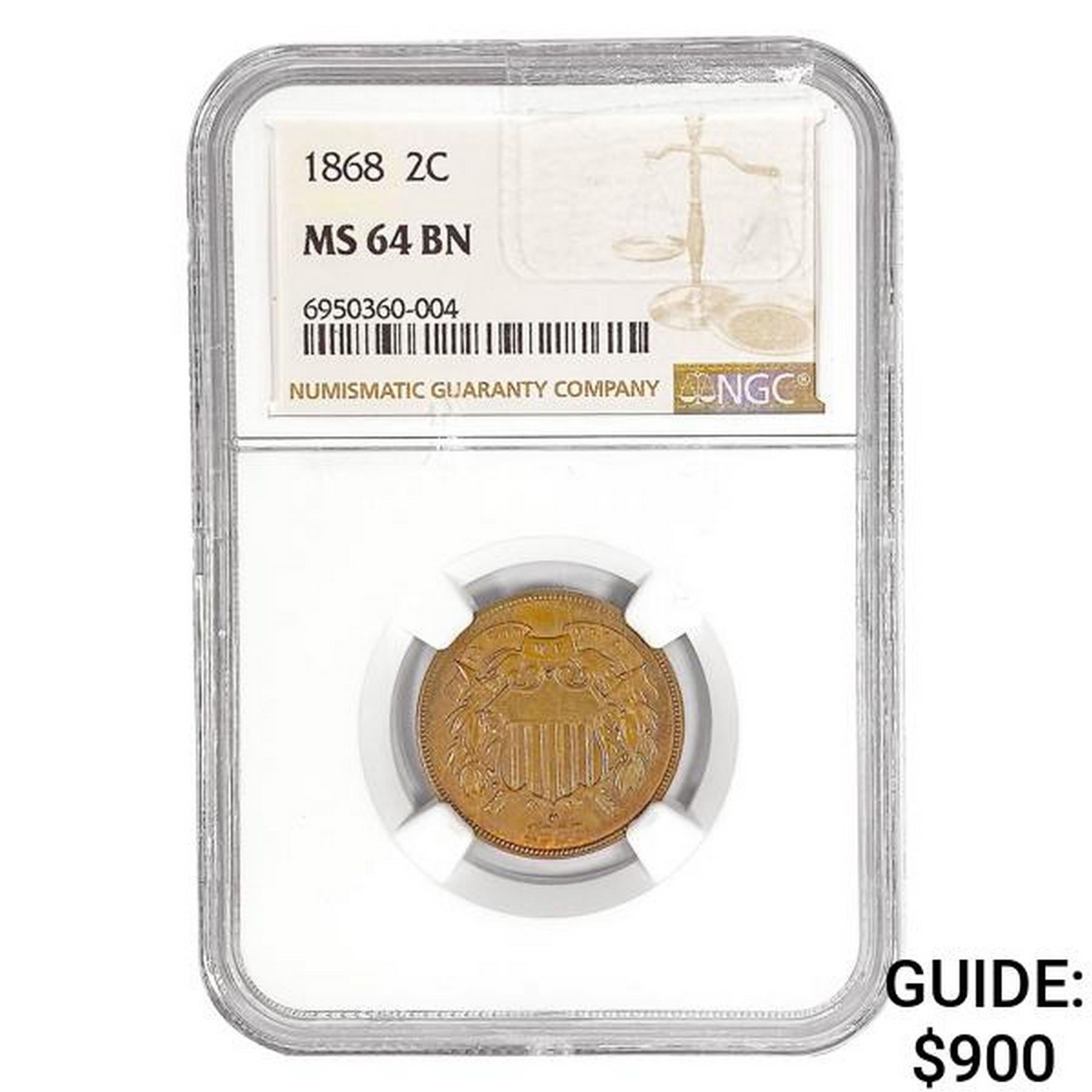 1868 Two Cent Piece NGC MS64 BN
