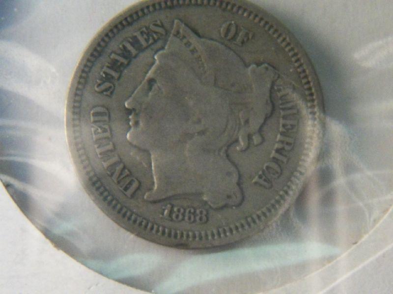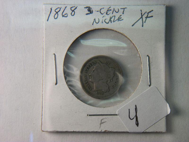 1868 XF 3-CENT NICKEL