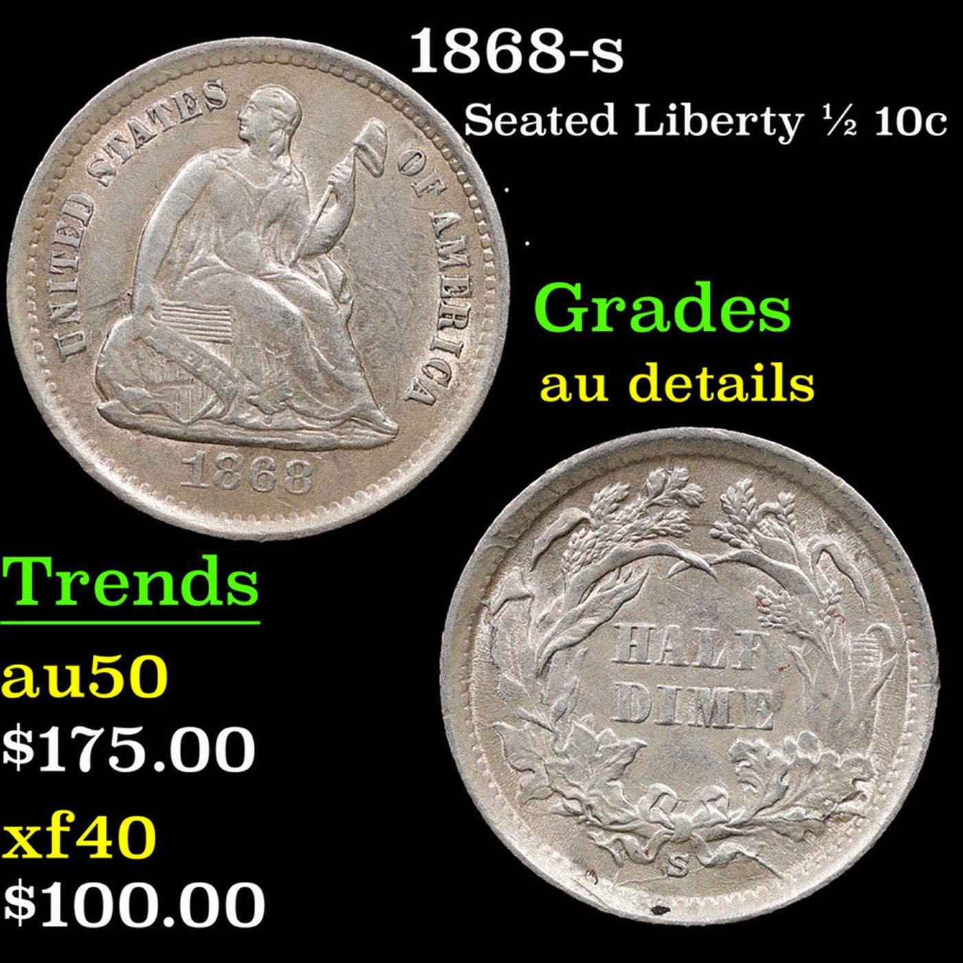 1868-s Seated Liberty Half Dime 1/2 10c Grades AU Details.