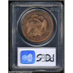 <table><tr><td><TABLE cellSpacing=0 cellPadding=0 width="100%" bgColor=#000000 border=0><TBODY> <TR><TD width="100%"><TABLE cellSpacing=1 cellPadding=3 width="100%" border=0><TBODY><TR><TD width="100%" bgColor=#79735c><FONT face=arial color=#ffffff size=3><B>Description</B> </FONT></TD></TR><TR><TD width="100%" bgColor=#ffffff><FONT face=arial size=2><B>1869 $1 Dollar, Judd-763, Pollock-848, R.7, PR64 Red PCGS.</B></I> Regular die trials issue for the Seated dollar. Struck in copper with a reeded edge. While officially classed as a die trials issue, the USPatterns.com website states, "the off-metal 'trials' of this year were deliberately struck for sale to collectors." Nevertheless, they are very scarce with only three or four pieces known. This is a lovely example that has glowing, original red surfaces. Close examination reveals a few tiny specks of carbon, which account for the grade, but all-in-all this is a magnificent piece and a rarely seen large-format copper pattern from the 1860s.<BR><I>From The New Millennium Collection.</B></I> </FONT></TD></TR></TBODY></TABLE></TD></TR></TBODY></TABLE><BR><A name=PricesRealized></A><TABLE cellSpacing=0 cellPadding=0 width="100%" bgColor=#000000 border=0><TBODY><TR><TD width="100%"><TABLE cellSpacing=1 cellPadding=3 width="100%" border=0><TBODY><TR><TD width="100%" bgColor=#79735c><A name=PR><FONT face=arial color=#ffffff size=3><B>Previous Prices from Heritage Auctions</B> </FONT></A></TD></TR><TR><TD bgColor=#f6f6ed>No Prior Data Recorded </TD></TR><TR><TD bgColor=#ffffff><FONT face=arial size=1 ?>PLEASE NOTE: All prices realized reflect the final hammer price PLUS the buyer's premium in auctions that charge a buyer's premium. Each item has a notation at the top of the listing indicating whether that lot included a buyer's premium. Example: A item that sells with a final hammer price of $100 and a 20% buyer's premium will display with a price realized of $120. All information listed is intended to be as accurate as possible, but errors are possible. Please use this guide carefully and inform us of any inaccuracies. </FONT></TD></TR></TBODY></TABLE></TD></TR></TBODY></TABLE><BR><TABLE cellSpacing=0 cellPadding=0 width="100%" bgColor=#000000 border=0><TBODY><TR><TD width="100%"><TABLE cellSpacing=1 cellPadding=3 width="100%" border=0><TBODY><TR><TD width="100%" bgColor=#79735c colSpan=6><FONT face=arial color=#ffffff size=3><B>Price Guide*</B> </FONT></TD></TR><TR bgColor=#f6f6ed><TD align=middle><B>Grade</B> </TD><TD align=middle><B>Coin World<BR>(Trends)</B> </TD><TD align=middle><B>Numismedia<BR>Retail</B> </TD><TD align=middle><B>Numismedia<BR>Wholesale</B> </TD><TD align=middle><B>Coin<BR>Universe</B> </TD><TD align=middle><B>Heritage<BR>Value Index</B> </TD></TR><TR bgColor=#ffffff><TD align=middle>63</TD><TD align=right>---</TD><TD align=right>---</TD><TD align=right>---</TD><TD align=right>---</TD><TD align=right>---</TD></TR><TR style="FONT-WEIGHT: bold" bgColor=#cccfdd><TD align=middle>64</TD><TD align=right>---</TD><TD align=right>---</TD><TD align=right>---</TD><TD align=right>---</TD><TD align=right>---</TD></TR><TR bgColor=#ffffff><TD align=middle>65</TD><TD align=right>---</TD><TD align=right>---</TD><TD align=right>---</TD><TD align=right>---</TD><TD align=right>---</TD></TR><TR bgColor=#ffffff><TD colSpan=6><FONT size=1>*All information listed is intended to be as accurate as possible, but errors are possible. No item may be returned or refused based on this information which is provided as a service to our customers. You should contact each pricing source directly to determine the accuracy of this information. </FONT></TD></TR></TBODY></TABLE></TD></TR></TBODY></TABLE><BR><TABLE cellSpacing=0 cellPadding=0 width="100%" bgColor=#000000 border=0><TBODY><TR><TD width="100%"><TABLE cellSpacing=1 cellPadding=3 width="100%" border=0><TBODY><TR><TD width="100%" bgColor=#79735c><FONT face=arial color=#ffffff size=3><B>Population Guide</B> </FONT></TD></TR><TR bgColor=#ffffff><TD align=middle><!-- Begin Output of Population Grid--><TABLE cellSpacing=0 cellPadding=0 width="100%" border=0><TBODY><TR><TD vAlign=center><TABLE cellSpacing=0 width="100%" border=1 cellsadding="3"><TBODY><TR><TD vAlign=center><TABLE cellSpacing=0 cellPadding=3 width="100%" border=1><TBODY><TR><TD vAlign=center align=middle bgColor=#f0f1e8 colSpan=2 <CENTER><FONT face=Arial size=2><B>PCGS Pop </B></FONT><CENTER></CENTER></TD><TD vAlign=center align=middle bgColor=#f0f1e8 colSpan=2><CENTER><FONT face=Arial size=2><B>NGC Pop</B></CENTER></FONT></TD></TR><TR><TD vAlign=center><FONT face=Arial size=2>(64)</FONT> </TD><TD vAlign=center align=right><FONT face=Arial size=2>1</FONT> </TD><TD vAlign=center><FONT face=Arial size=2>(64)</FONT> </TD><TD vAlign=center align=right><FONT face=Arial size=2>0</FONT> </TD></TR><TR><TD vAlign=center><FONT face=Arial size=2>(>64)</FONT> </TD><TD vAlign=center align=right><FONT face=Arial size=2>0</FONT> </TD><TD vAlign=center><FONT face=Arial size=2>(>64)</FONT> </TD><TD vAlign=center align=right><FONT face=Arial size=2>0</FONT> </TD></TR></TBODY></TABLE></TD></TR></TBODY></TABLE></TD></TR></TBODY></TABLE><!-- End Output of Population Grid--></TD></TR></TBODY></TABLE></TD></TR></TBODY></TABLE><BR><TABLE cellSpacing=0 cellPadding=0 width="100%" bgColor=#000000 border=0><TBODY><TR> Important notice: Heritage usually auctions material at the rate of 200-250 lots per hour. On some occasions eBay Live bid software or the Internet may not be able to keep up with the pace of the auction. We recommend placing a realistic absentee bid now as insurance to avoid disappointment. Occasionally the auctioneer may eliminate or reject an eBay Live bid, and the auctioneer may also reopen a lot after the close of the eBay live bidding (usually because we missed an audience bid), and may reject your bid even if it shows you as the winning bidder. By bidding via eBay Live, you agree that Heritage may award the lot to another bidder at its sole discr