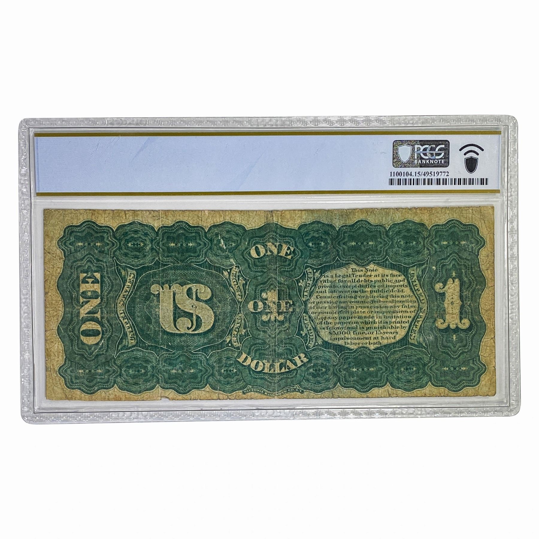 1869 $1 RAINBOW LEGAL TENDER USN PCGS F-15