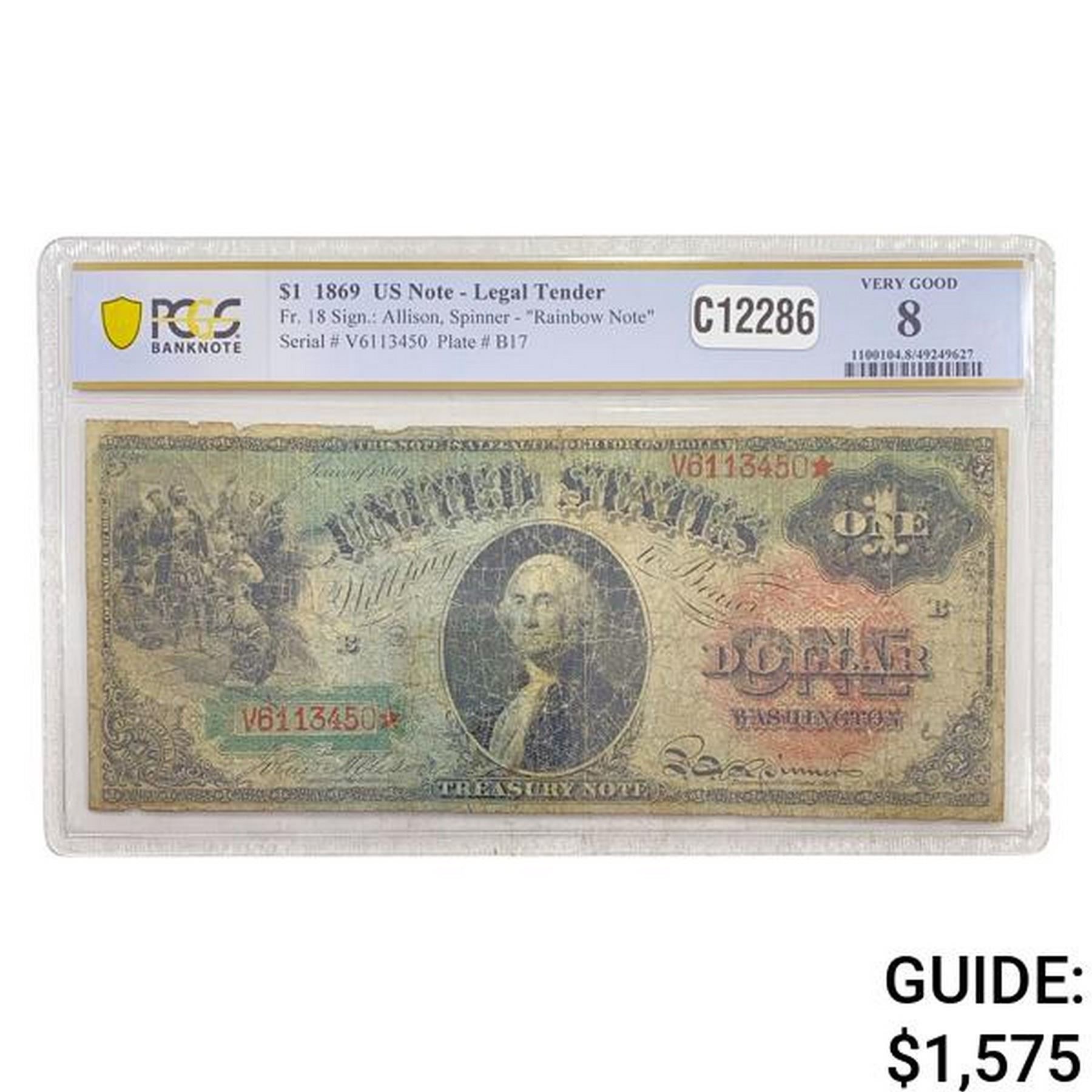1869 $1 "RAINBOW" LEGAL TENDER USN PCGS VG-8