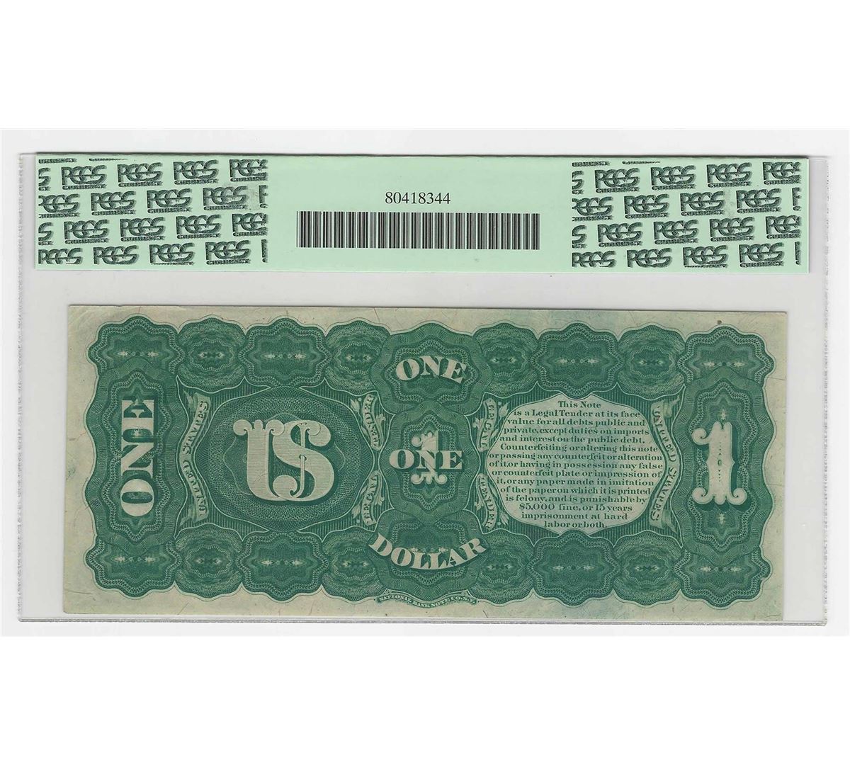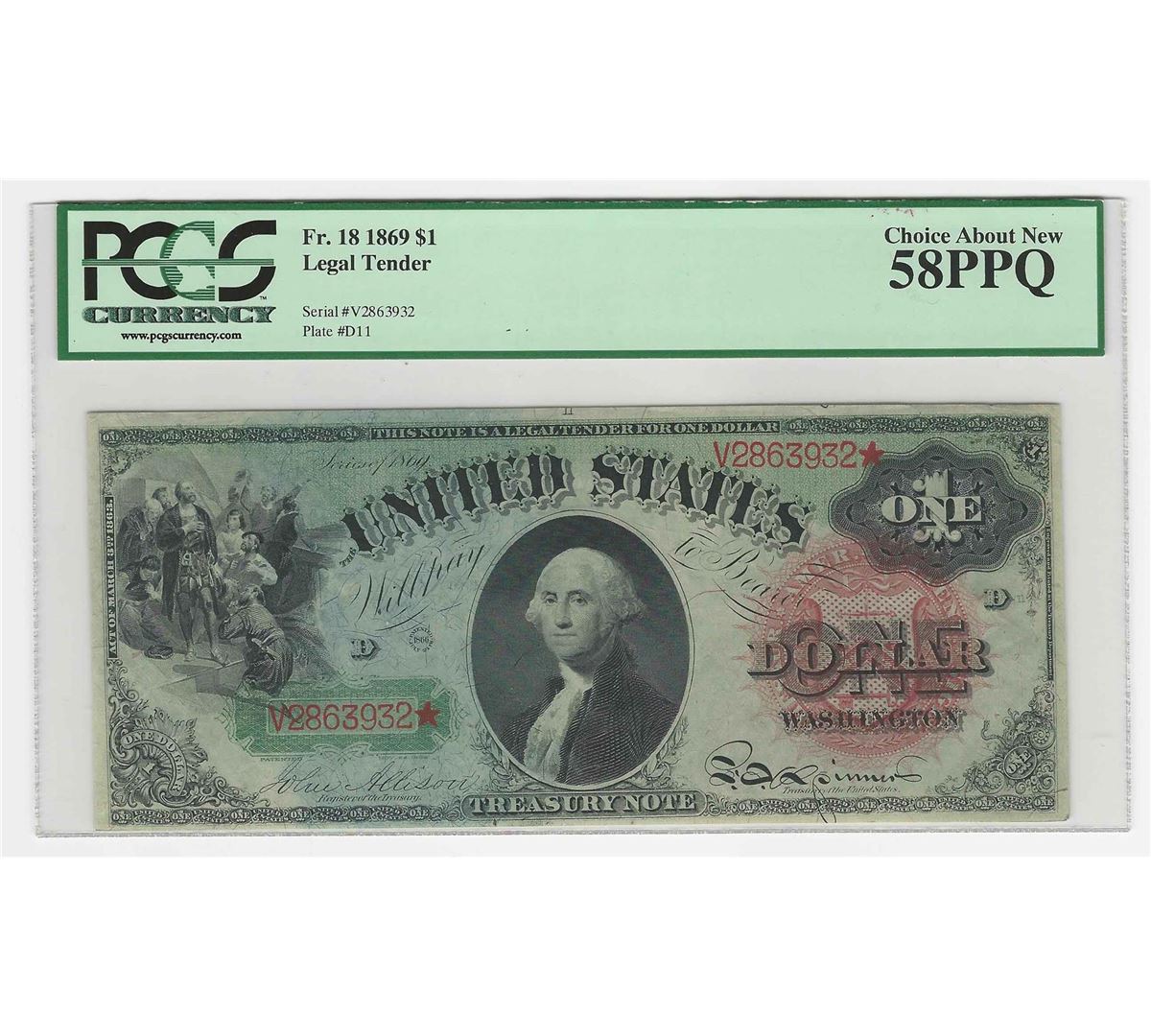One 1869 $1 Rainbow Large Size Legal Tender Note PCGS Graded 58PPQ. PCGS Graded.