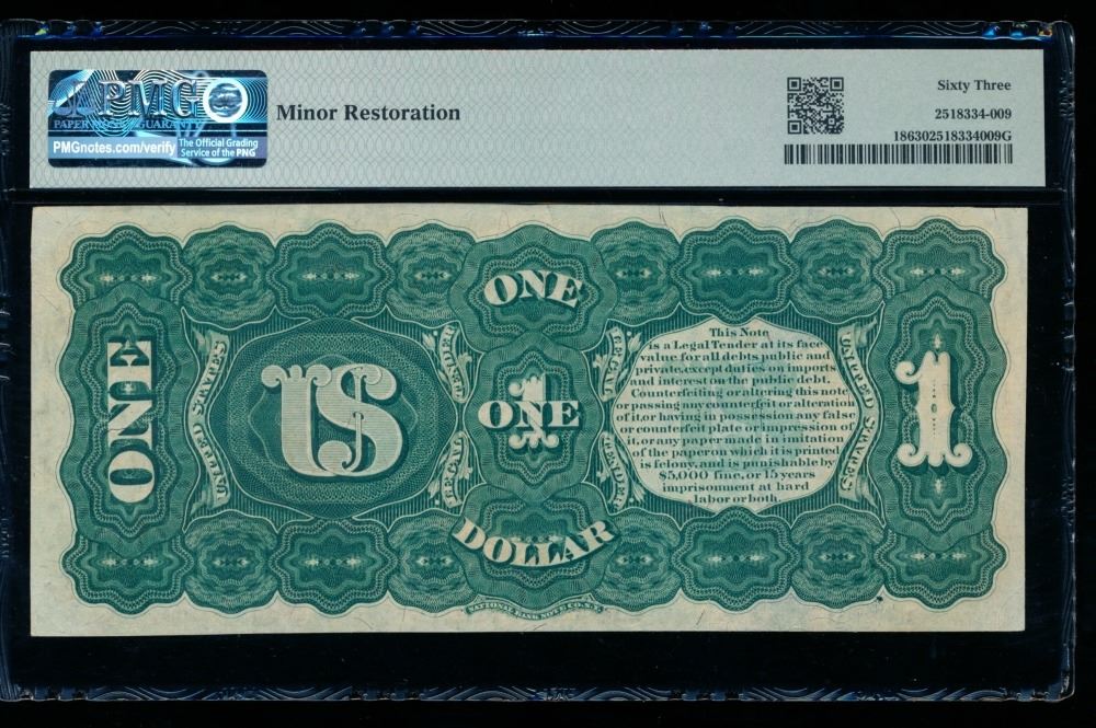 1869 $1 Rainbow Legal Tender Note PMG 63